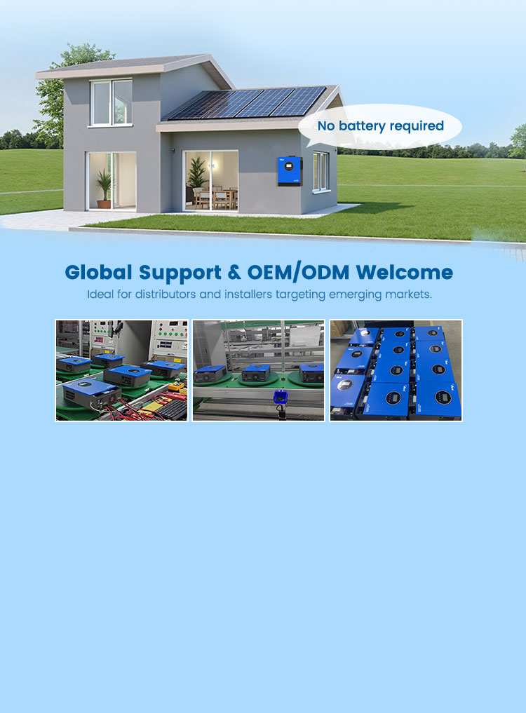 Specifically designed for grid-tie systems without energy storage requirements, eliminating battery purchase and maintenance costs while simplifying system configuration. Compared to hybrid inverters, it offers a more economical solution for users in stable grid areas.